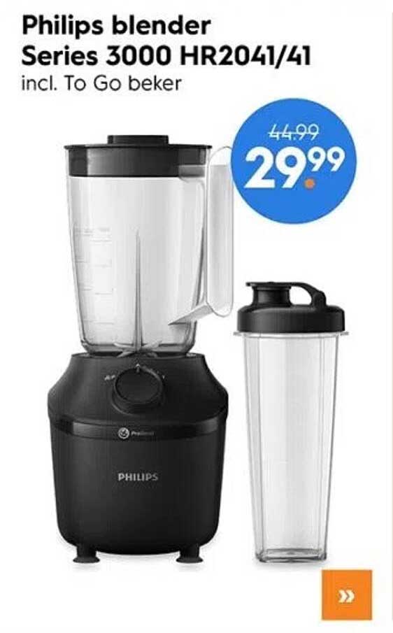 Bekijk de Philips Blender Series 3000 Hr2041/41 aanbieding bij Blokker! Deze fantastische aanbieding is nu beschikbaar in de nieuwste Blokker folder. Profiteer van deze kans en bespaar flink op je aankoop.