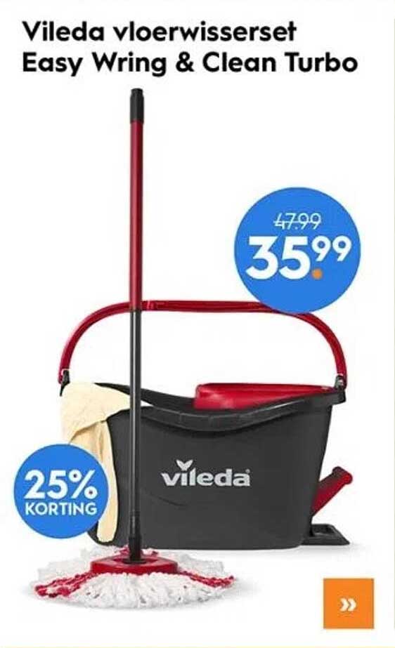 Bekijk de Vileda Vloerwisserset Easy Wring & Clean Turbo aanbieding bij Blokker! Deze fantastische aanbieding is nu beschikbaar in de nieuwste Blokker folder. Profiteer van deze kans en bespaar flink op je aankoop.