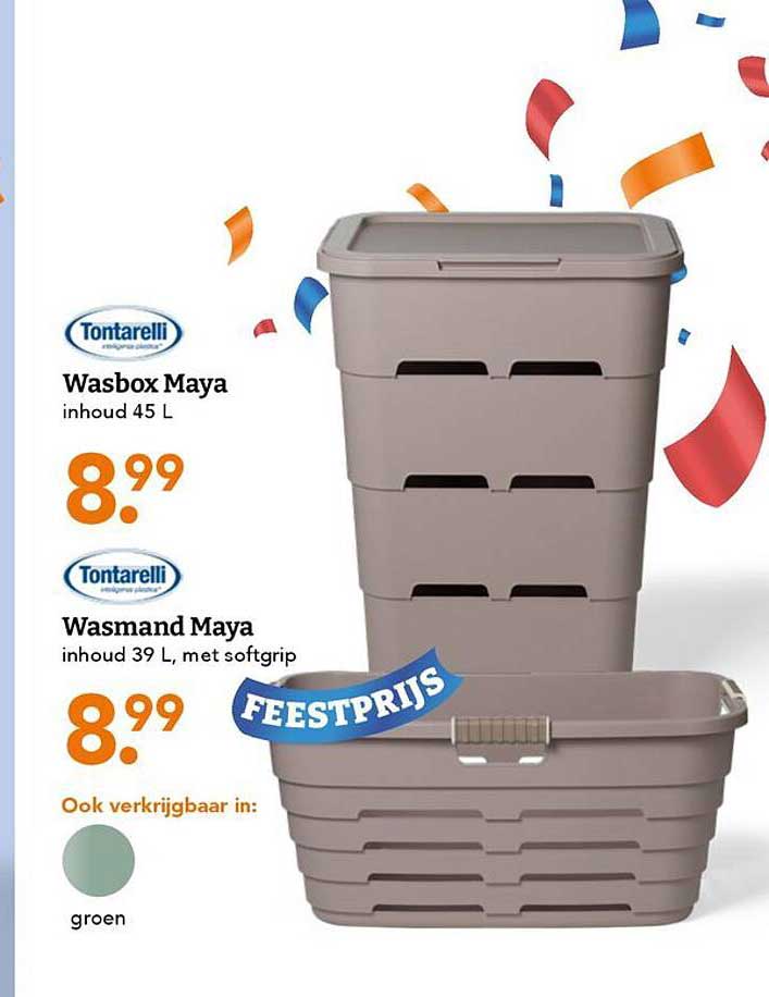 Bekijk nu de Wasbox Maya 45 L en Wasmand Maya 39 L aanbieding in de Blokker folder. Deze aanbieding is geldig van 22-10-2025 tot en met 02-11-2025.