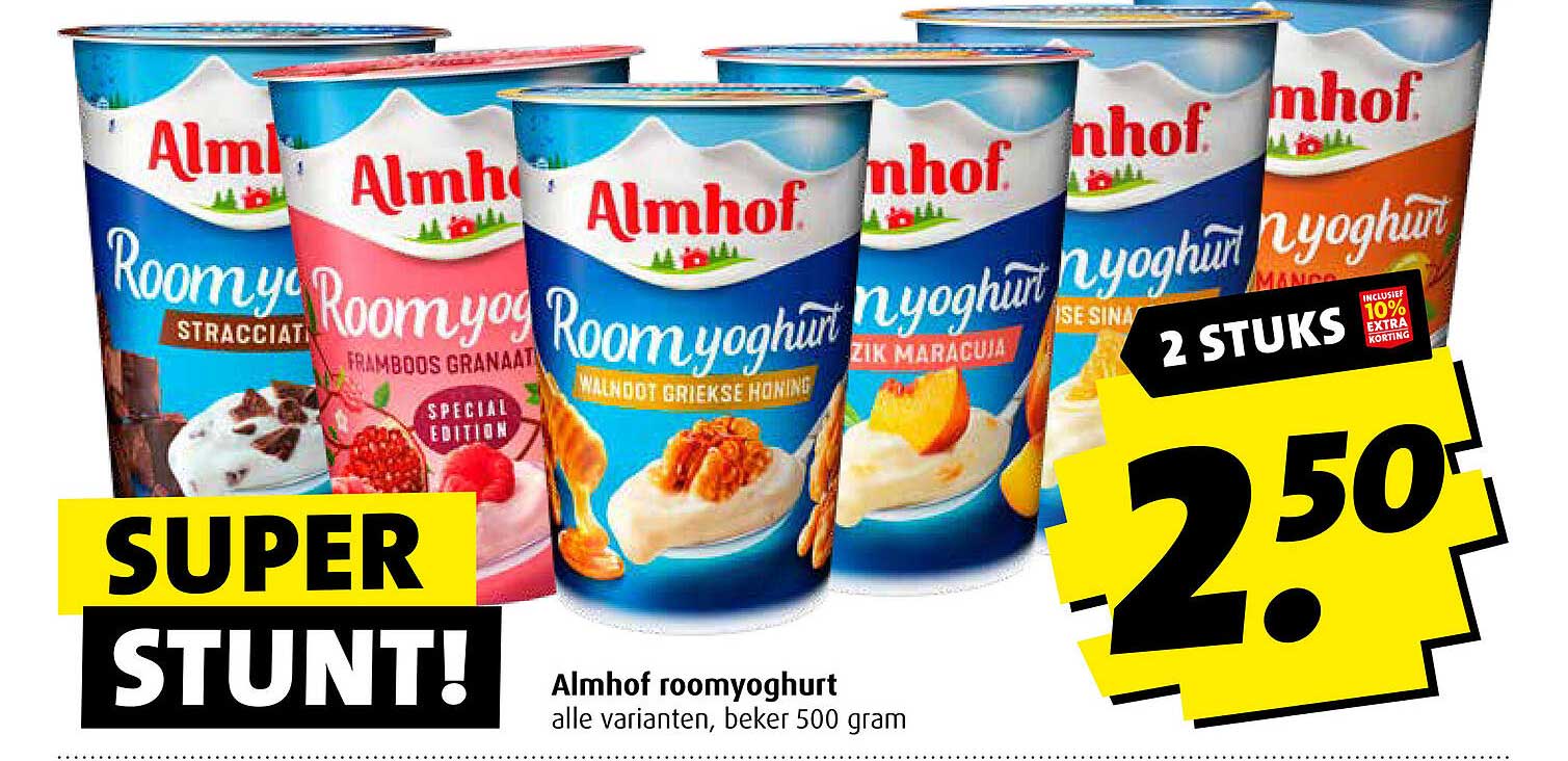 Bekijk de Almhof Roomyoghurt aanbieding bij Boni! Deze fantastische aanbieding is nu beschikbaar in de nieuwste Boni folder. Profiteer van deze kans en bespaar flink op je aankoop.