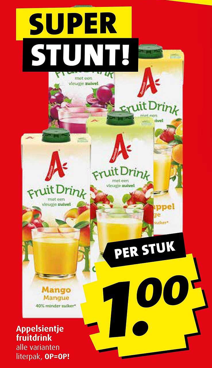 Bekijk de Appelsientje Fruitdrink aanbieding bij Boni! Deze fantastische aanbieding is nu beschikbaar in de nieuwste Boni folder. Profiteer van deze kans en bespaar flink op je aankoop.