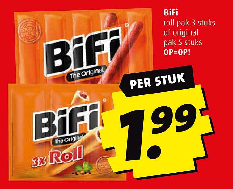 Bekijk nu de BiFi roll pak 3 stuks of original pak 5 stuks aanbieding in de Boni folder. Deze aanbieding is geldig van 17-02-2025 tot en met 23-02-2025.