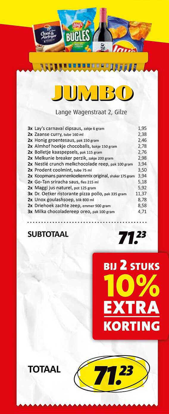 Deze week krijg je bij Jumbo een fantastische kans om je boodschappen voordelig in te slaan. Bij de aankoop van twee artikelen ontvang je maar liefst 10% extra korting! Dit is dé uitgelezen kans om niet alleen je favoriete producten te kopen, maar ook nog eens te besparen. Het aanbod is geldig van 7 tot en met 13 april 2025, dus zorg dat je deze kans niet mist.