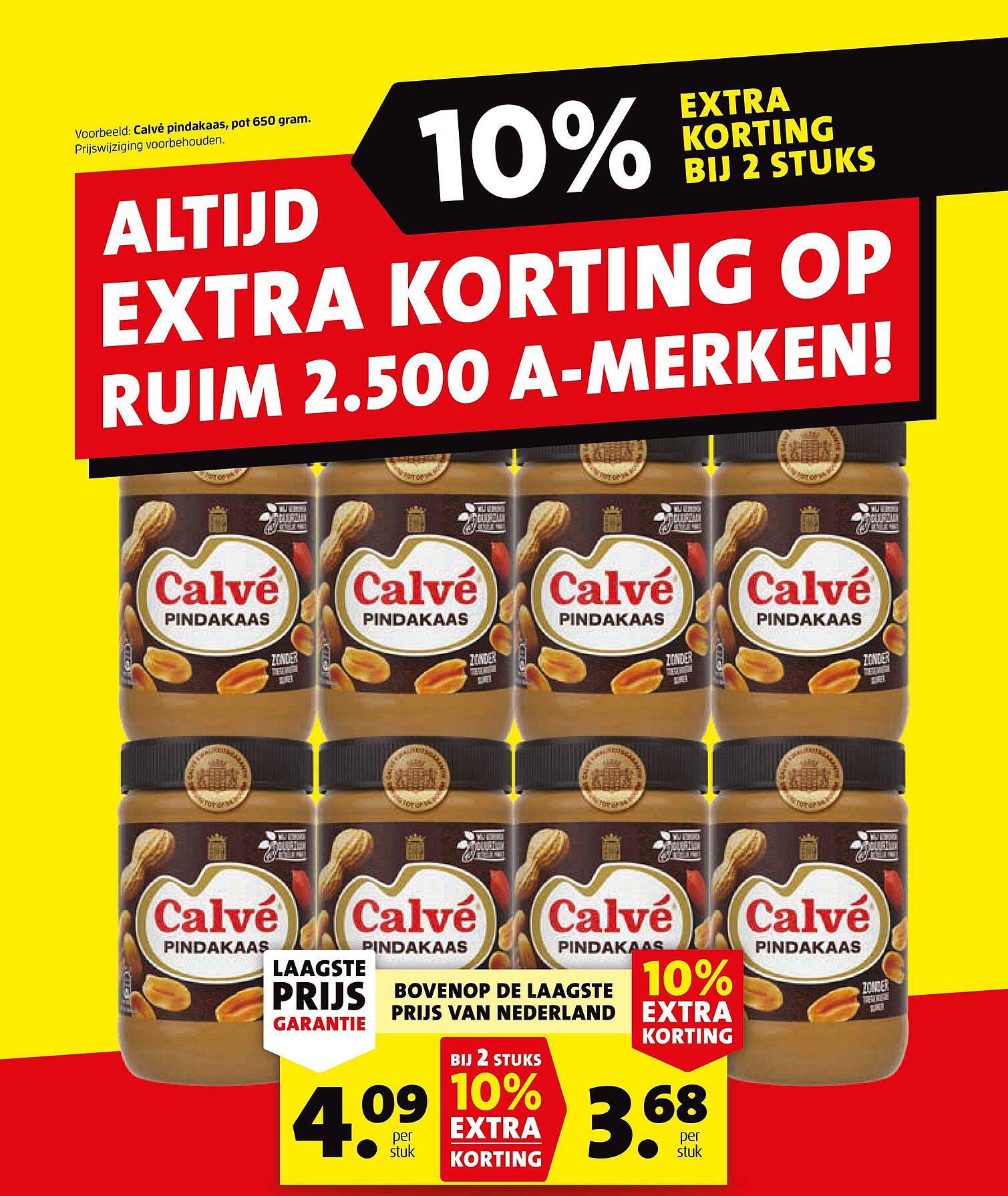 Wil je direct op de hoogte zijn zodra de Calvé Pindakaas in de aanbieding is? Meld je aan voor onze aanbiedingen-alert. Zo krijg je een melding zodra het product tegen een voordelige prijs beschikbaar is.