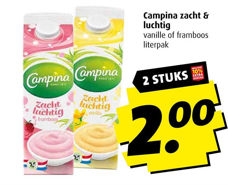 Bekijk de Campina Zacht & Luchtig aanbieding bij Boni! Deze fantastische aanbieding is nu beschikbaar in de nieuwste Boni folder. Profiteer van deze kans en bespaar flink op je aankoop.
