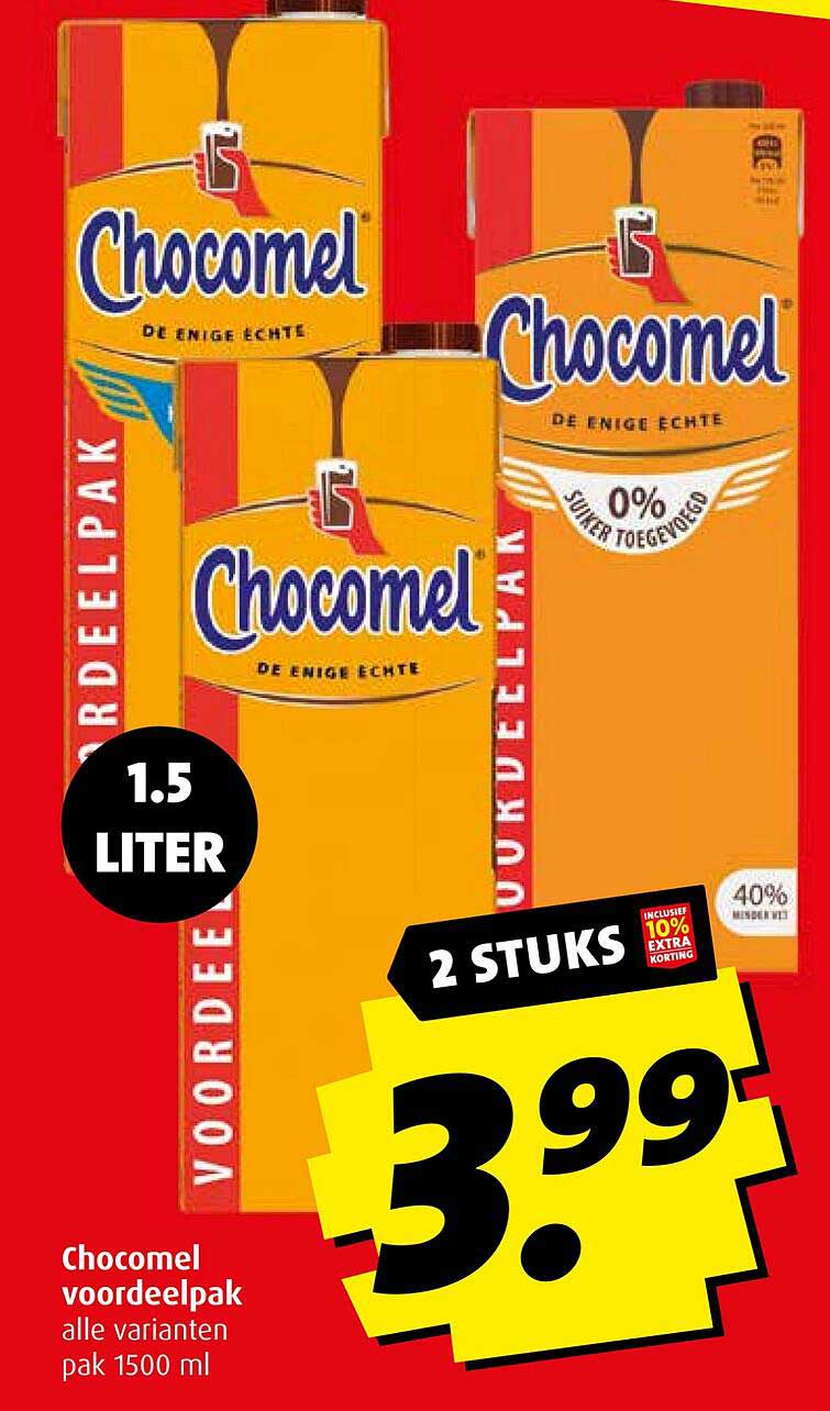 Ontdek de geweldige Chocomel Voordelpak aanbieding in de nieuwste Boni folder. Naast deze aanbieding vind je nog veel meer aantrekkelijke kortingen. Je kunt de Chocomel Voordelpak eenvoudig online bestellen via de Boni website of kopen in een winkel bij jou in de buurt.