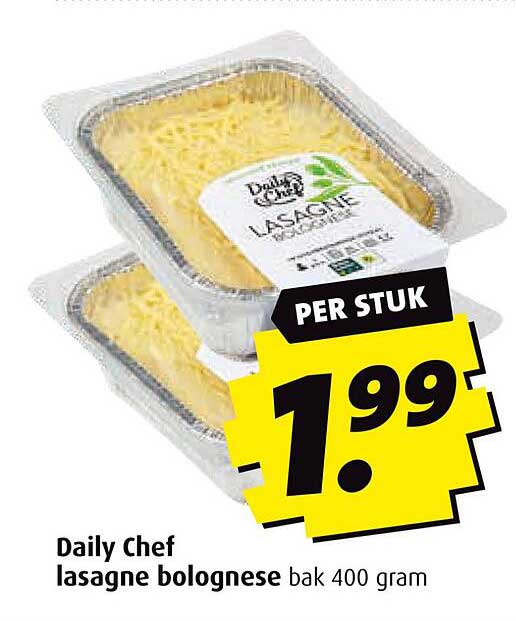 Bekijk nu de Daily Chef lasagne bolognese aanbieding in de Boni folder. Deze aanbieding is geldig van 10-03-2025 tot en met 16-03-2025.