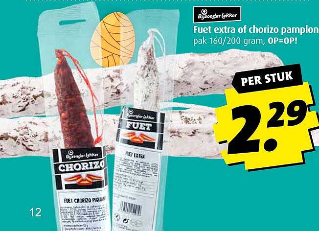 Bekijk nu de Fuet extra of chorizo pamplon pak 160/200 gram, OP=OP! aanbieding in de Boni folder. Deze aanbieding is geldig van 14-04-2025 tot en met 20-04-2025.