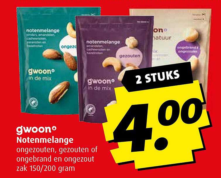 Bekijk de Gwoon Notenmelange aanbieding bij Boni! Deze fantastische aanbieding is nu beschikbaar in de nieuwste Boni folder. Profiteer van deze kans en bespaar flink op je aankoop.