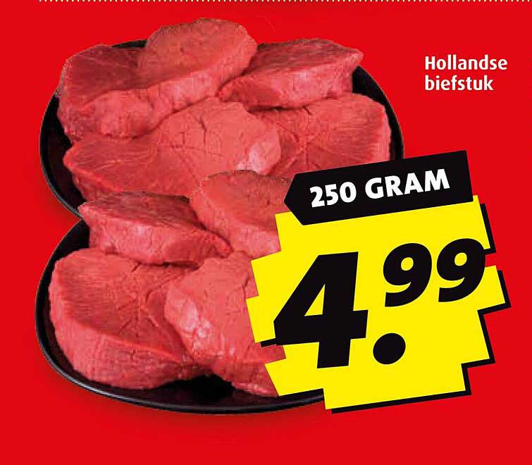Hollandse biefstuk is bekend om zijn malsheid en rijke smaak. Het is een veelzijdig ingrediënt dat zich uitstekend leent voor diverse bereidingsmethoden, zoals grillen, bakken of zelfs roosteren. Door de aantrekkelijke prijs van slechts €4,99 voor 250 gram, is dit een aanbod dat je niet wilt missen!