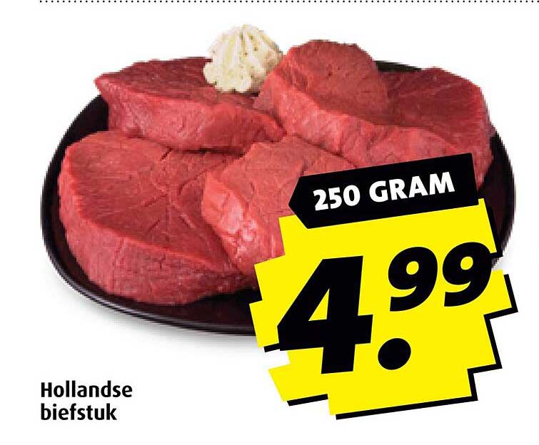 Normaal gesproken zou je voor een stuk vlees van deze kwaliteit veel meer betalen. Nu heb je de kans om deze Hollandse biefstuk voor slechts 4,99 euro aan te schaffen, wat een geweldige aanbieding is. Dit houdt in dat je een luxe maaltijd kunt bereiden zonder je budget te overschrijden. Vergeet niet dat deze aanbieding geldig is van 19 mei tot en met 25 mei 2025, dus mis het niet!
