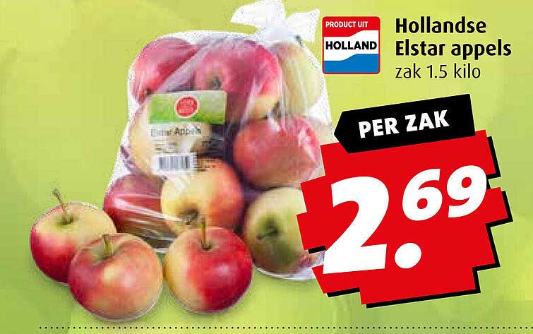 Bekijk de Hollandse Elstar Appels aanbieding bij Boni! Deze fantastische aanbieding is nu beschikbaar in de nieuwste Boni folder. Profiteer van deze kans en bespaar flink op je aankoop.