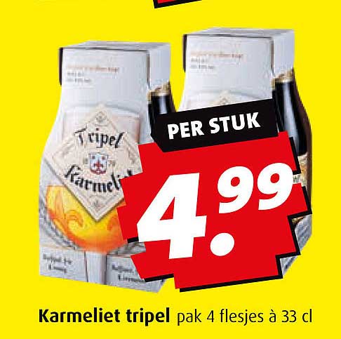 Bekijk nu de Karmeliet tripel aanbieding in de Boni folder. Deze aanbieding is geldig van 18-11-2024 tot en met 24-11-2024.