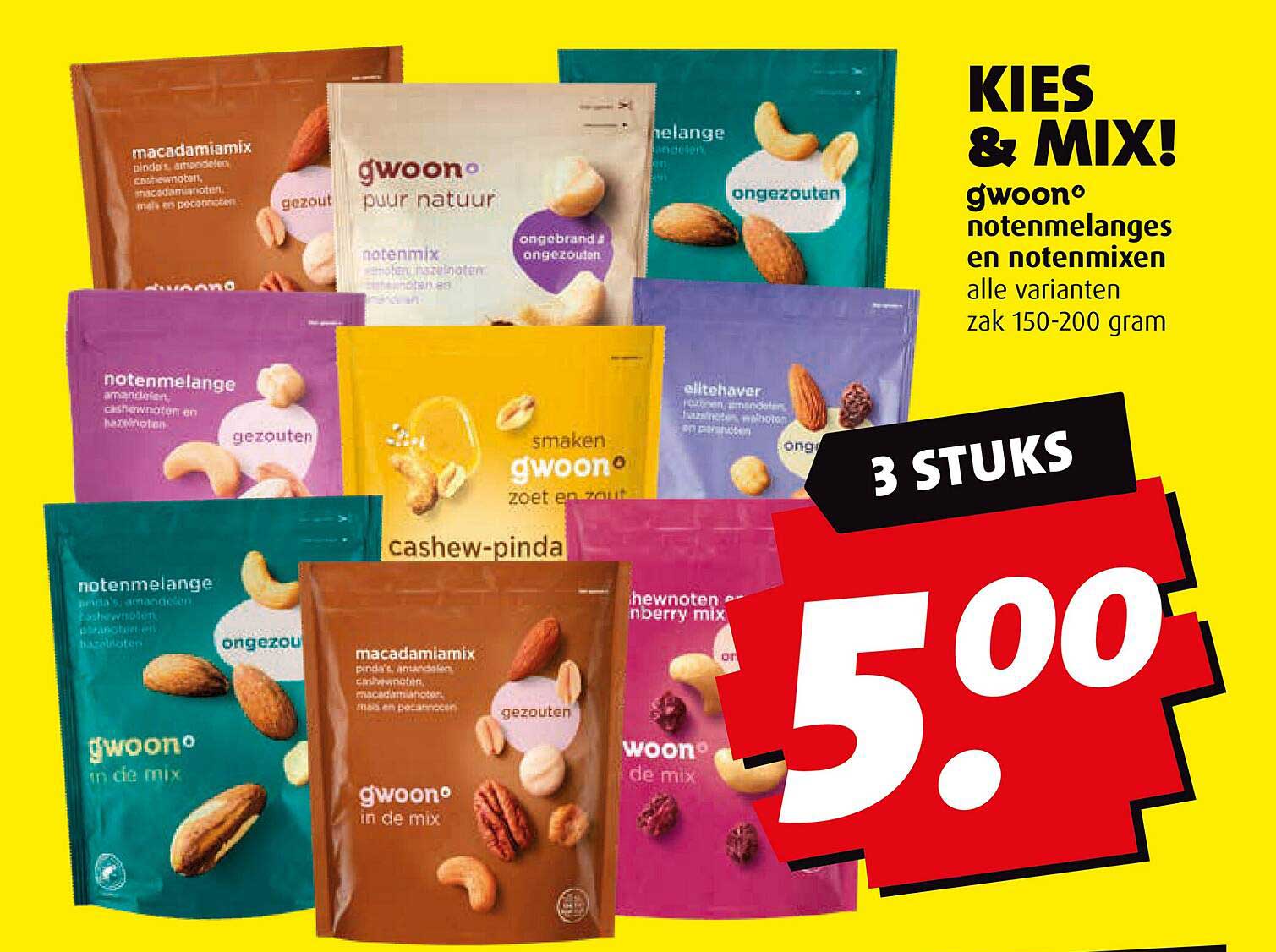 Maak je snacks gezonder met de heerlijke notenmelanges en notenmixen van gwoon®. Deze aanbieding van Boni biedt jou de kans om drie zakken te kopen voor slechts €5,00! De variëteit aan smaken zorgt ervoor dat er altijd iets naar jouw smaak tussen zit. Perfect voor elke gelegenheid, of je nu lekker wilt snacken tijdens een filmavond of op zoek bent naar een gezonde toevoeging aan je salade.