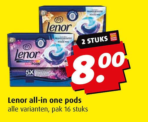 Bekijk de Lenor All-In One Pods aanbieding bij Boni! Deze fantastische aanbieding is nu beschikbaar in de nieuwste Boni folder. Profiteer van deze kans en bespaar flink op je aankoop.