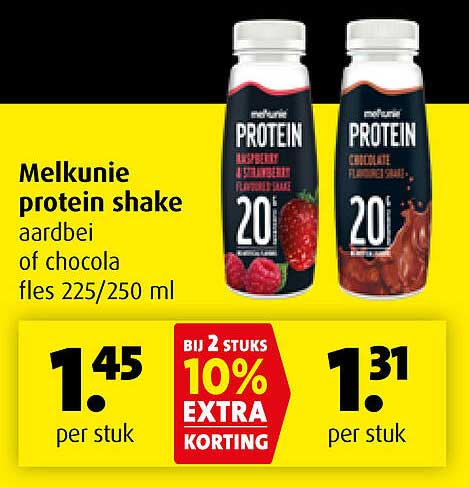 Bekijk de Melkunie Protein Shake aanbieding bij Boni! Deze fantastische aanbieding is nu beschikbaar in de nieuwste Boni folder. Profiteer van deze kans en bespaar flink op je aankoop.