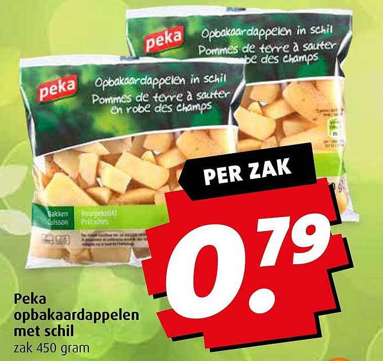 Wil je direct op de hoogte zijn zodra de Peka Opbakaardappelen Met Schil in de aanbieding is? Meld je aan voor onze aanbiedingen-alert. Zo krijg je een melding zodra het product tegen een voordelige prijs beschikbaar is.
