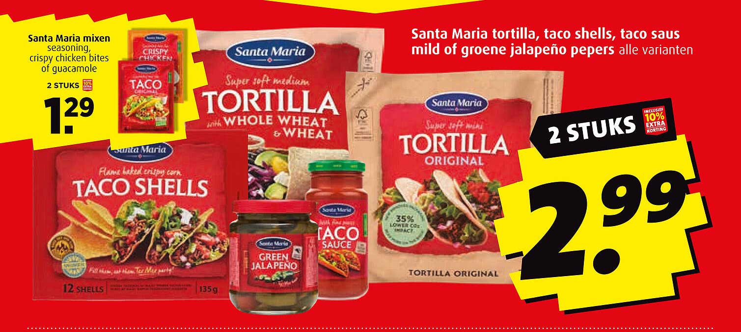 Bekijk de Santa Maria Tortilla, Taco Shells, Taco Saus Mild Of Groene Jalapeño Pepers Alle Varianten aanbieding bij Boni! Deze fantastische aanbieding is nu beschikbaar in de nieuwste Boni folder. Profiteer van deze kans en bespaar flink op je aankoop.