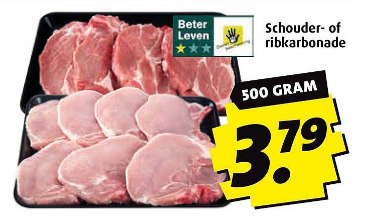 Wil je direct op de hoogte zijn zodra de Schouder- Of Ribkarbonade in de aanbieding is? Meld je aan voor onze aanbiedingen-alert. Zo krijg je een melding zodra het product tegen een voordelige prijs beschikbaar is.