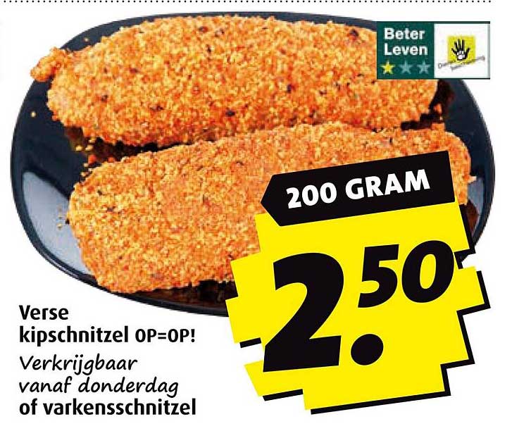 Bekijk nu de Verse kipschnitzel OP=OP! aanbieding in de Boni folder. Deze aanbieding is geldig van 12-05-2025 tot en met 18-05-2025.