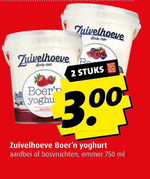 Bekijk de Zuivelhoeve Boer’n Yoghurt aanbieding bij Boni! Deze fantastische aanbieding is nu beschikbaar in de nieuwste Boni folder. Profiteer van deze kans en bespaar flink op je aankoop.