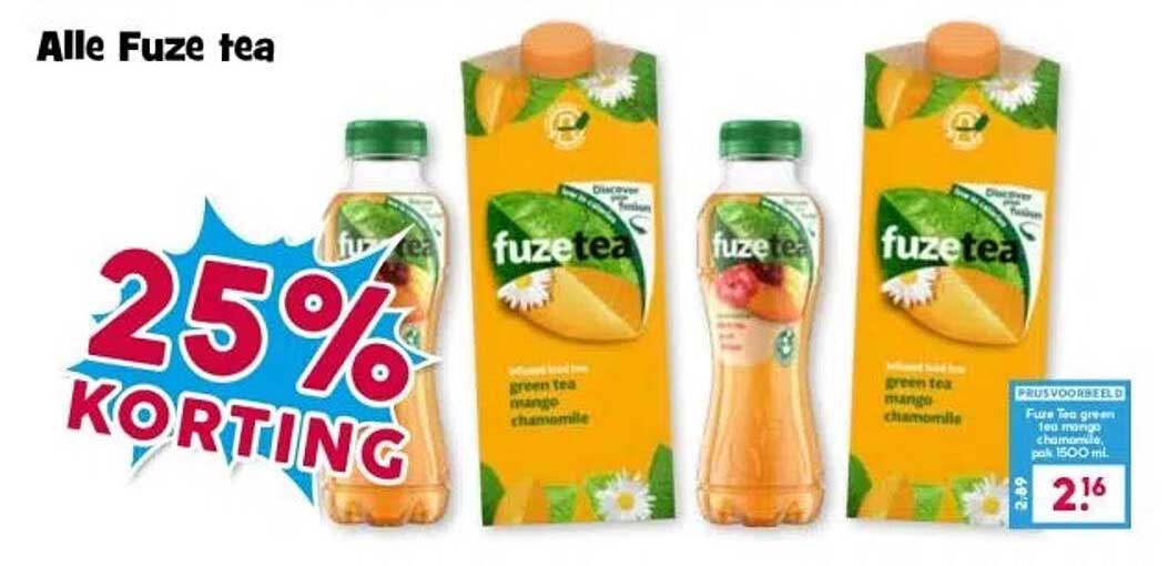 Bekijk de Alle Fuze Tea aanbieding bij Boon's Markt! Deze fantastische aanbieding is nu beschikbaar in de nieuwste Boon's Markt folder. Profiteer van deze kans en bespaar flink op je aankoop.