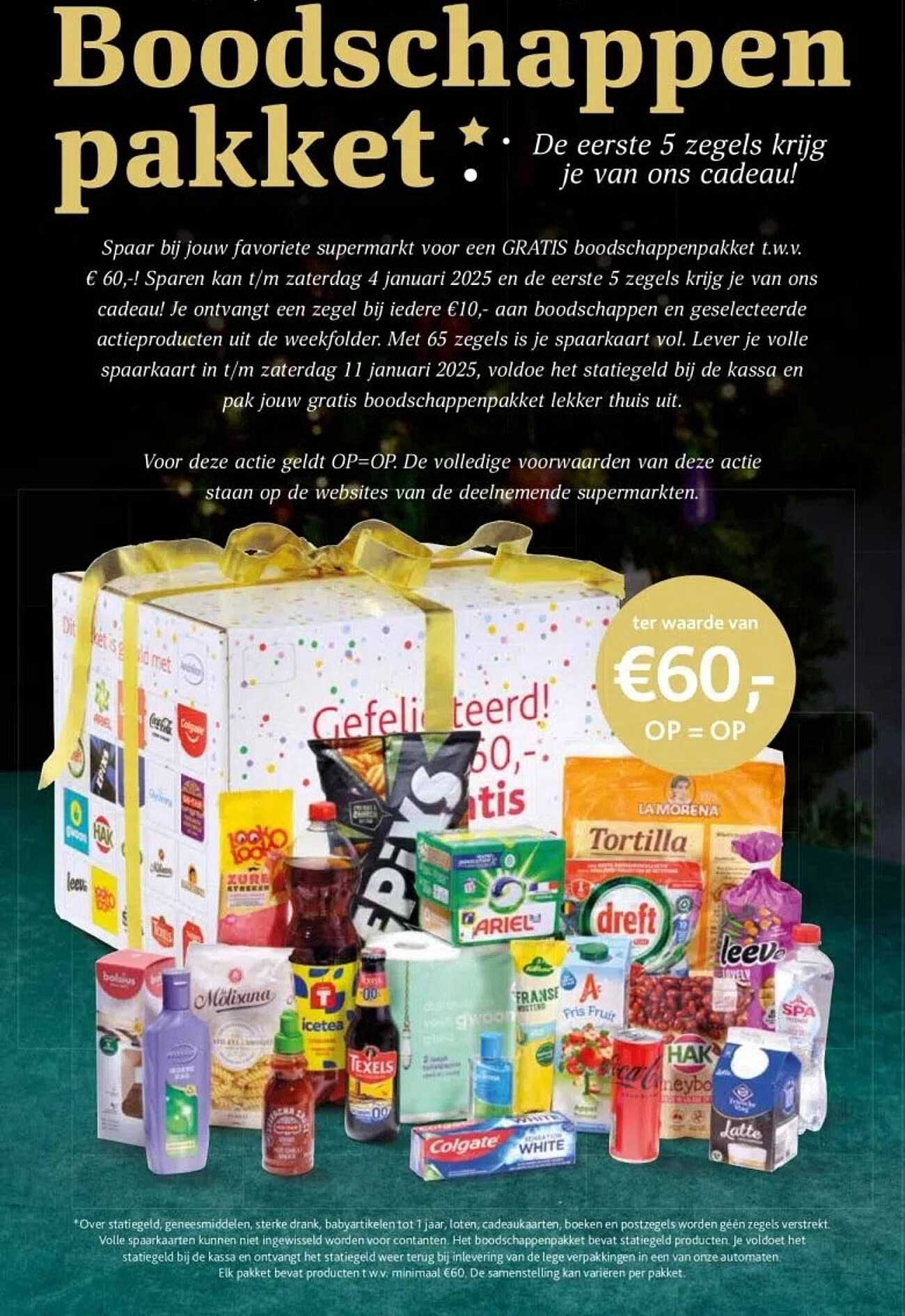 Bekijk nu de Boodschappenpakket : De eerste 5 zegels krijg je van ons cadeau! aanbieding in de Boon's Markt folder. Deze aanbieding is geldig van 23-12-2024 tot en met 28-12-2024.