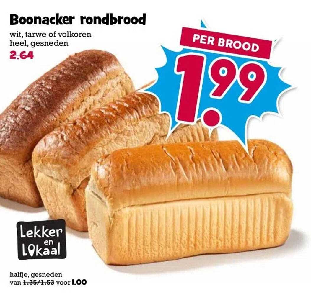 Bekijk de Boonacker Rondbrood aanbieding bij Boon's Markt! Deze fantastische aanbieding is nu beschikbaar in de nieuwste Boon's Markt folder. Profiteer van deze kans en bespaar flink op je aankoop.