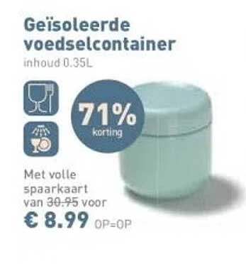 Ontdek de geweldige Geïsoleerde Voedselcontainer aanbieding in de nieuwste Boon's Markt folder. Naast deze aanbieding vind je nog veel meer aantrekkelijke kortingen. Je kunt de Geïsoleerde Voedselcontainer eenvoudig online bestellen via de Boon's Markt website of kopen in een winkel bij jou in de buurt.