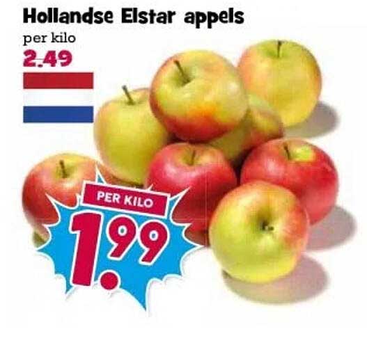 Ontdek de geweldige Hollandse Elstar Appels aanbieding in de nieuwste Boon's Markt folder. Naast deze aanbieding vind je nog veel meer aantrekkelijke kortingen. Je kunt de Hollandse Elstar Appels eenvoudig online bestellen via de Boon's Markt website of kopen in een winkel bij jou in de buurt.