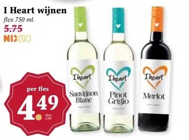 Ontdek de geweldige I Heart Wijnen aanbieding in de nieuwste Boon's Markt folder. Naast deze aanbieding vind je nog veel meer aantrekkelijke kortingen. Je kunt de I Heart Wijnen eenvoudig online bestellen via de Boon's Markt website of kopen in een winkel bij jou in de buurt.