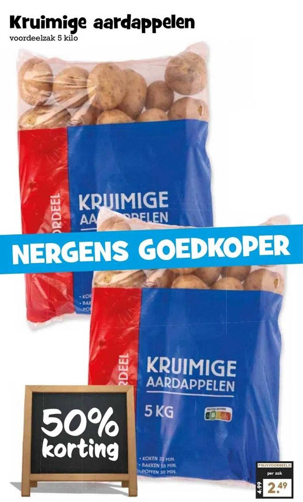 Bekijk de Kruimige Aardappelen aanbieding bij Boon's Markt! Deze fantastische aanbieding is nu beschikbaar in de nieuwste Boon's Markt folder. Profiteer van deze kans en bespaar flink op je aankoop.