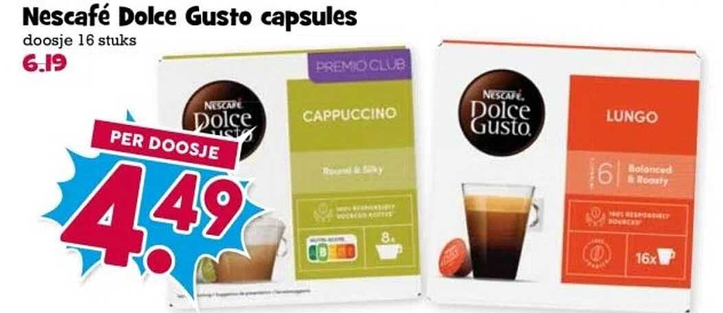 Ontdek de geweldige Nescafé Dolce Gusto Capsules aanbieding in de nieuwste Boon's Markt folder. Naast deze aanbieding vind je nog veel meer aantrekkelijke kortingen. Je kunt de Nescafé Dolce Gusto Capsules eenvoudig online bestellen via de Boon's Markt website of kopen in een winkel bij jou in de buurt.