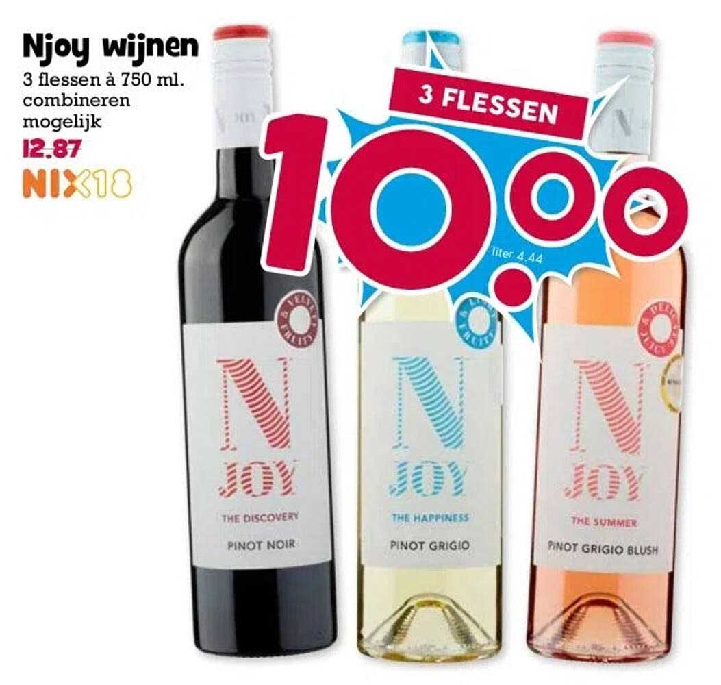 Ontdek de geweldige Njoy Wijnen aanbieding in de nieuwste Boon's Markt folder. Naast deze aanbieding vind je nog veel meer aantrekkelijke kortingen. Je kunt de Njoy Wijnen eenvoudig online bestellen via de Boon's Markt website of kopen in een winkel bij jou in de buurt.