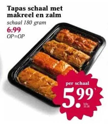 Ben je op zoek naar een heerlijke en gemakkelijke snack voor een feestje of een gezellig avondje thuis? Dan is de Tapas schaal met makreel en zalm absoluut iets voor jou! Deze smakelijke schaal biedt een perfecte mix van vis en kruiden, ideaal om te delen of gewoon voor jezelf te genieten. Met deze aanbieding kun je eenvoudig genieten van een premium smaakervaring zonder de deur uit te hoeven.