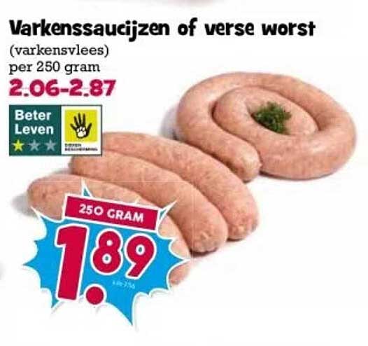 Bekijk de Varkenssaucijzen Of Verse Worst aanbieding bij Boon's Markt! Deze fantastische aanbieding is nu beschikbaar in de nieuwste Boon's Markt folder. Profiteer van deze kans en bespaar flink op je aankoop.