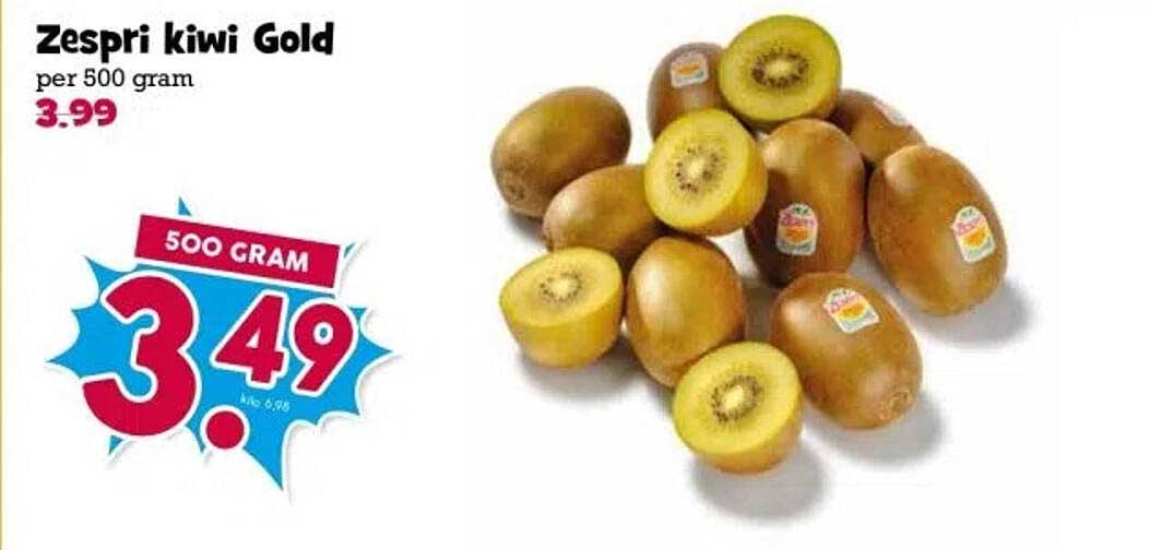 Bekijk nu de Zespri kiwi Gold per 500 gram aanbieding in de Boon's Markt folder. Deze aanbieding is geldig van 21-07-2025 tot en met 27-07-2025.