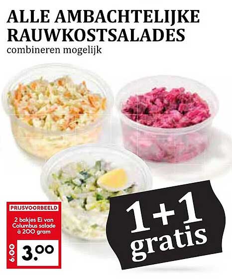 Normaal gesproken kost een bakje rauwkostsalade € 6,60. Met deze aanbieding krijg je echter 2 bakjes voor slechts € 3,00! Dit betekent dat je een geweldige besparing van maar liefst 50% kunt realiseren. En dat is nog niet alles: bij aankoop van één bakje krijg je er één gratis bij! Dit is werkelijk een kans die je niet wilt missen.