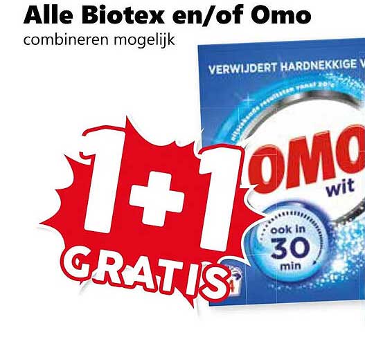 Maak je wasroutine nog eenvoudiger en effectiever met de geweldige aanbieding van alle Biotex en Omo producten! Tijdens deze actie krijg je de kans om te profiteren van een 1+1 gratis actie, waardoor je de kwaliteit van deze topmerken kunt ervaren zonder dat je te veel betaalt. Of je nu hardnekkige vlekken wilt aanpakken of gewoon je was wilt opfrissen, deze producten helpen je om stralend schone was te krijgen in een handomdraai.