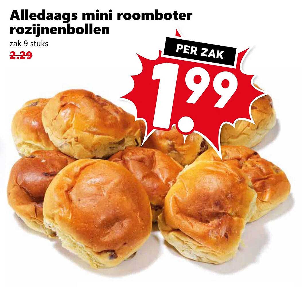 Bekijk nu de Alledaags mini roomboter rozijnenbollen aanbieding in de Coop folder. Deze aanbieding is geldig van 22-09-2025 tot en met 28-09-2025.