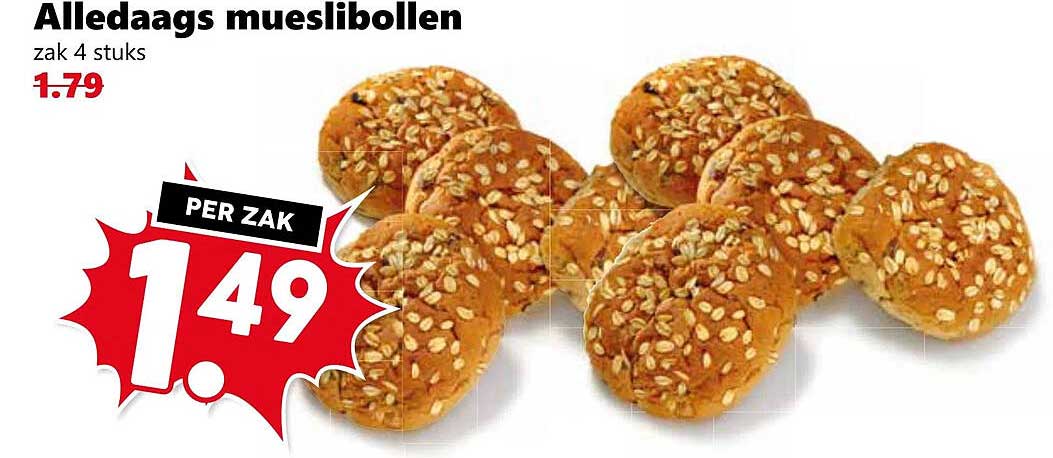 De normale prijs voor een zak mueslibollen is €1.79, maar in deze aanbieding betaal je slechts €1.49 per zak. Dat betekent een besparing van 30 cent, wat neerkomt op een flinke korting voor een kwaliteitsproduct. Dit is de perfecte gelegenheid om goed te besparen zonder in te boeten op kwaliteit!
