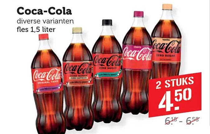 Bekijk nu de Coca-Cola diverse varianten fles 1,5 liter aanbieding in de Coop folder. Deze aanbieding is geldig van 28-07-2025 tot en met 03-08-2025.