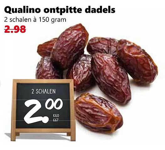 Bekijk nu de Qualino ontpitte dadels aanbieding in de Coop folder. Deze aanbieding is geldig van 06-10-2025 tot en met 12-10-2025.