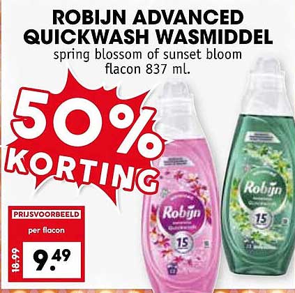 Maak kennis met de Robijn Advanced Quickwash Wasmiddel, een must-have voor elke huishouding die waarde hecht aan schone en frisse was. Deze aanbieding is niet te missen, vooral met maar liefst 50% korting! Waarom zou je meer betalen voor hetzelfde resultaat? Met de unieke formule van Robijn haal je een krachtig wasmiddel in huis, dat tot 15 wasbeurten meegaat. Kortom, een slimme keuze voor je portemonnee en je was.