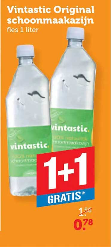 Bekijk nu de Vintastic Original schoonmaakazijn fles 1 liter aanbieding in de Coop folder. Deze aanbieding is geldig van 01-09-2025 tot en met 07-09-2025.