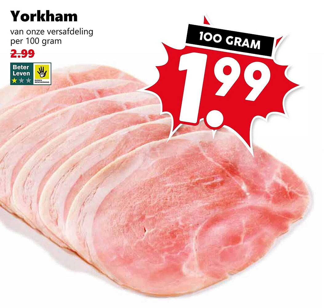 De Yorkham is veelzijdig en kan voor verschillende toepassingen worden gebruikt. Of je nu een klassiek broodje ham wilt maken, het wilt toevoegen aan een hartige quiche, of gewoon als snack bij je favoriete drankje wilt serveren, deze ham zorgt altijd voor een heerlijke smaakbeleving. Bovendien is het leuk om te weten dat je met deze ham kiest voor een 'Beter Leven' product, wat betekent dat je ook een steentje bijdraagt aan dierenwelzijn.