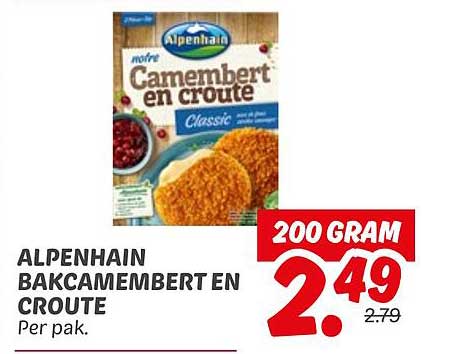Bekijk nu de ALPENHAIN BAKCAMEMBERT EN CROUTE aanbieding in de Dekamarkt folder. Deze aanbieding is geldig van 18-02-2025 tot en met 24-02-2025.