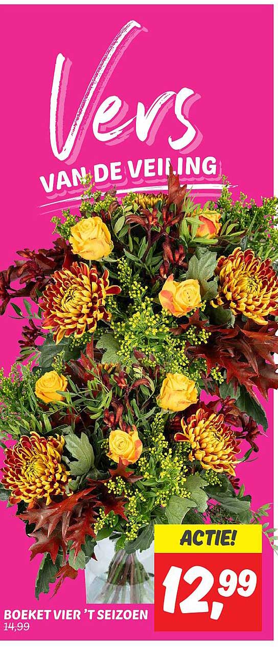 Boeket Vier ’T Seizoen aanbieding bij Dekamarkt
