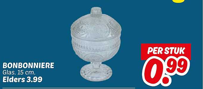 De reguliere prijs van deze bonbonnière is €3,99, wat betekent dat je met deze aanbieding maar liefst €3,00 bespaart! Dit maakt het niet alleen een aantrekkelijke optie voor je eigen gebruik, maar ook een geweldige gelegenheid om er meerdere te kopen en weg te geven als cadeau. Waarom meer betalen als je deze prachtige bonbonnière nu voor zo'n lage prijs kunt kopen?