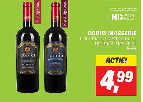Bekijk de Codici Masserie aanbieding bij Dekamarkt! Deze fantastische aanbieding is nu beschikbaar in de nieuwste Dekamarkt folder. Profiteer van deze kans en bespaar flink op je aankoop.